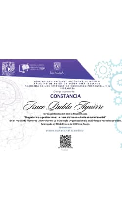 También se desempeñó como mentor en la Certificación Internacional en Consultoría Profesional en la Universidad Iberoamericana de Puebla, compartiendo conocimientos y acompañando el desarrollo de nuevos especialistas.